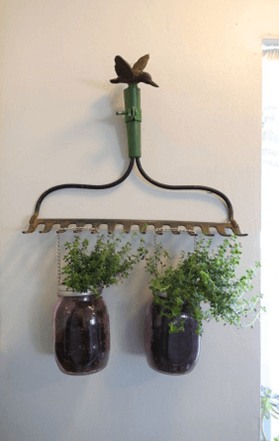 If you have a rake head and no handle, this DIY is for you. Hang the rake head on the wall on a hook and get ropes that can hold the weight of potted plants. Attach the rope around the pots and loop it around the rake teeth. To make it festive, you can put electric diyas on the potted soil. You can also hang small, lightweight lanterns from the rake teeth.