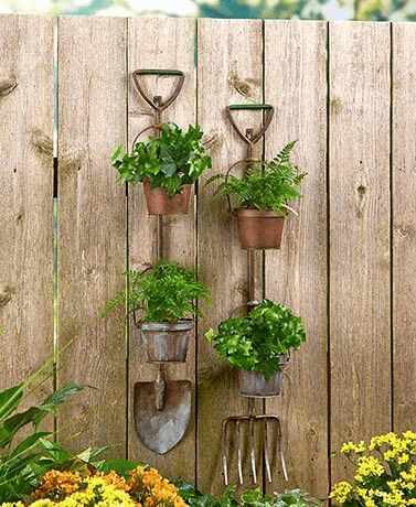For this DIY, you need a shovel or a rake with handles intact, potted plants, miniature decorations and strong adhesive. With the handle on the bottom, push it into the soil and secure it. Now carefully attach the pots and start decorating however you like! Add fairy lights for an extra whimsical touch.