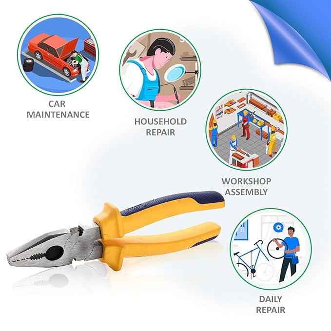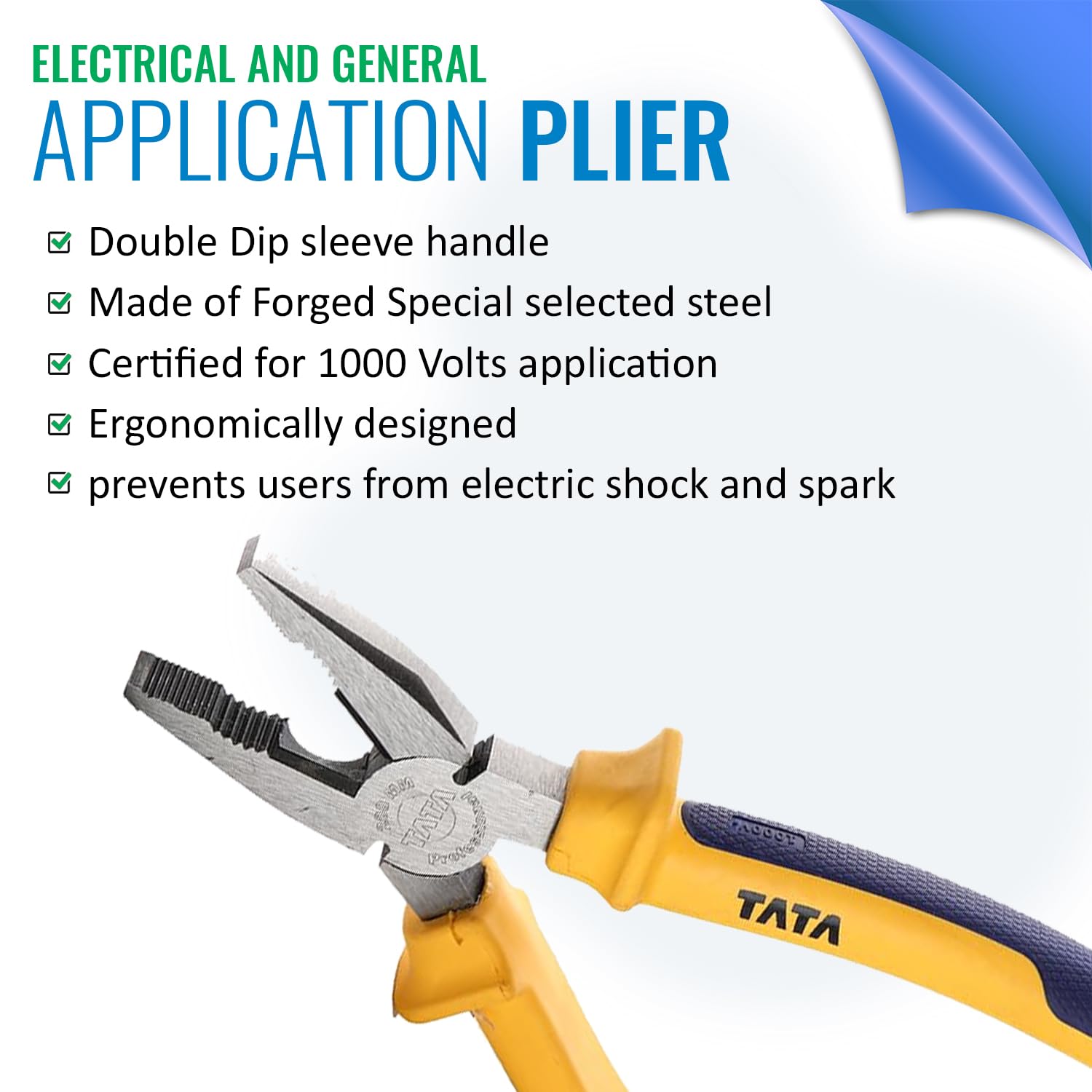 When it comes to cutting wires accurately, the Tata Agrico combo pliers are great. Their strength and longevity come from the forged C-50 steel that goes into making them. The sleeves’ thermoplastic rubber can withstand temperatures ranging from 25 ͦ C to 70 ͦ C. It is also approved for use at 1000 volts. The double-dip double colour sleeves and cushioned grip handles provide increased comfort and abrasion resistance.