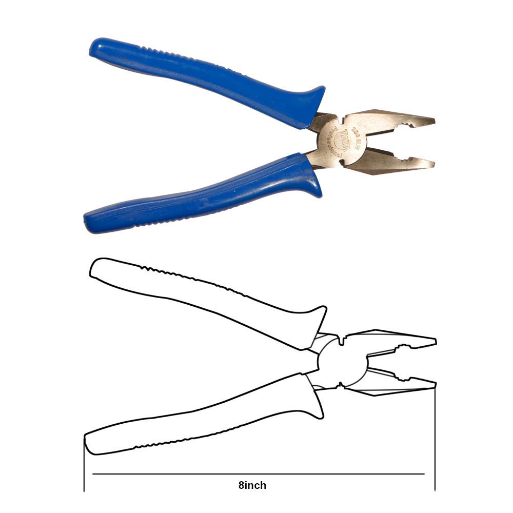 Made from high-grade steel, the Tata Agrico combination pliers are ideal for live wire working and other household applications. The thermoplastic rubber sleeves can withstand 25 ͦ C and 70 ͦ C. The jaws are fully hardened and the cutting edge is also tempered and sharp enough to cut hard and soft wires with ease.