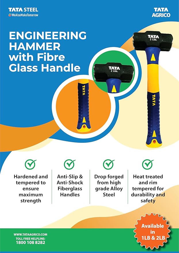 - Professional Tata Agrico Machinist Hammer 200 gm10″ 2G Fiberglass Handle